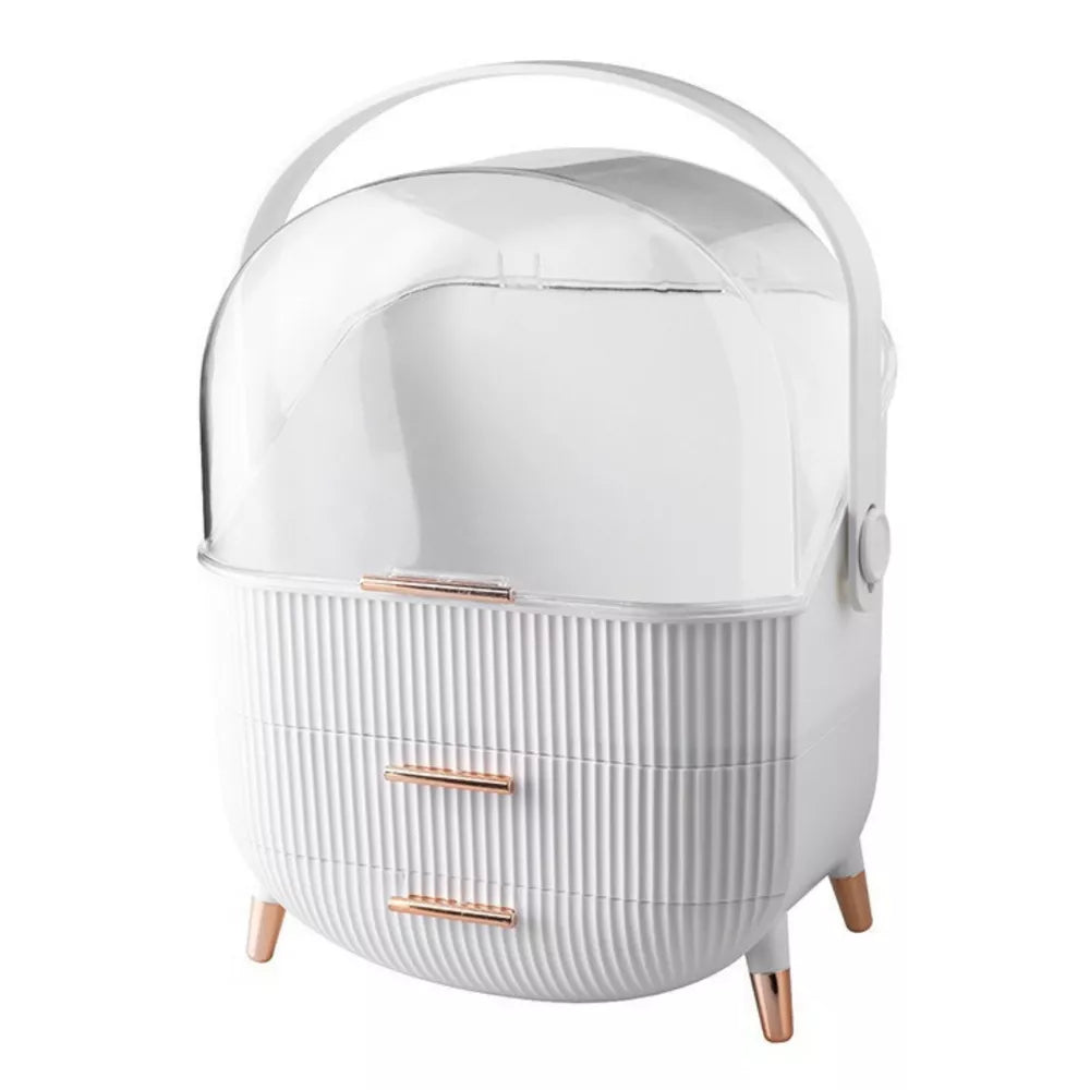 Produktas išsiskiria savo erdvumu, kurio matmenys yra 37 x 25 x 18,5 cm, todėl jame lengvai telpa įvairūs produktai: nuo šepetėlių, akių šešėlių ir lūpų dažų iki kvepalų buteliukų, kremų ar priežiūros kosmetikos. Permatomas dangtelis ne tik apsaugo turinį nuo dulkių, bet ir leidžia greitai peržiūrėti turinį neatidarant stalčių ar skyrelių.