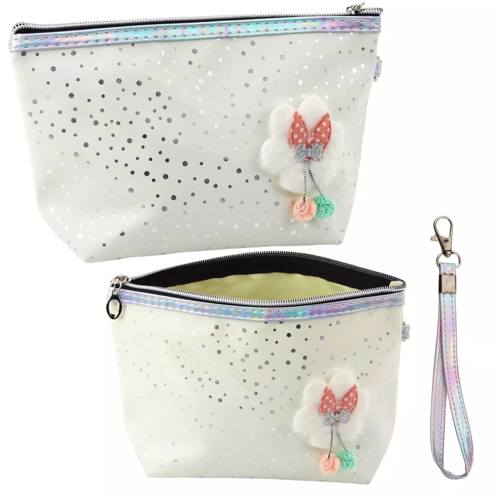 Kosmetinė-pieštukinė su kaspinėliu ir blizgiais taškeliais, balta, 23x16cm