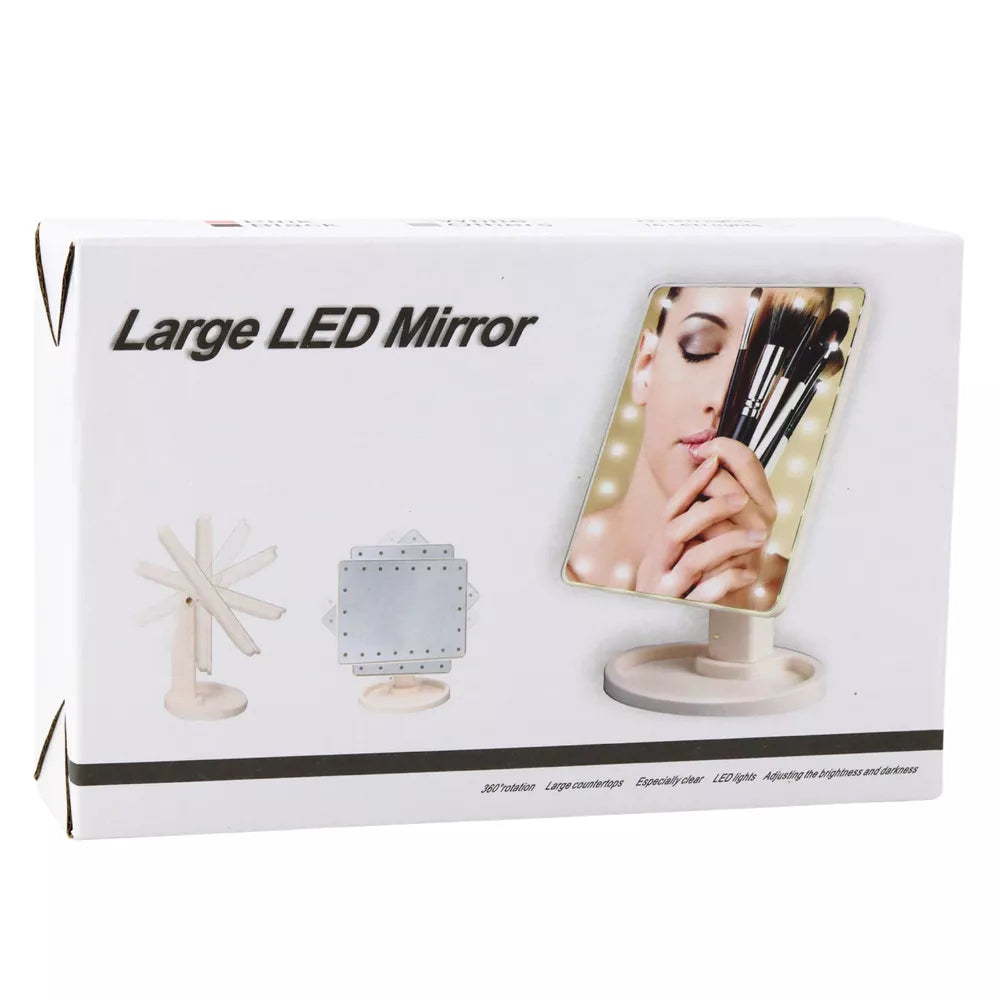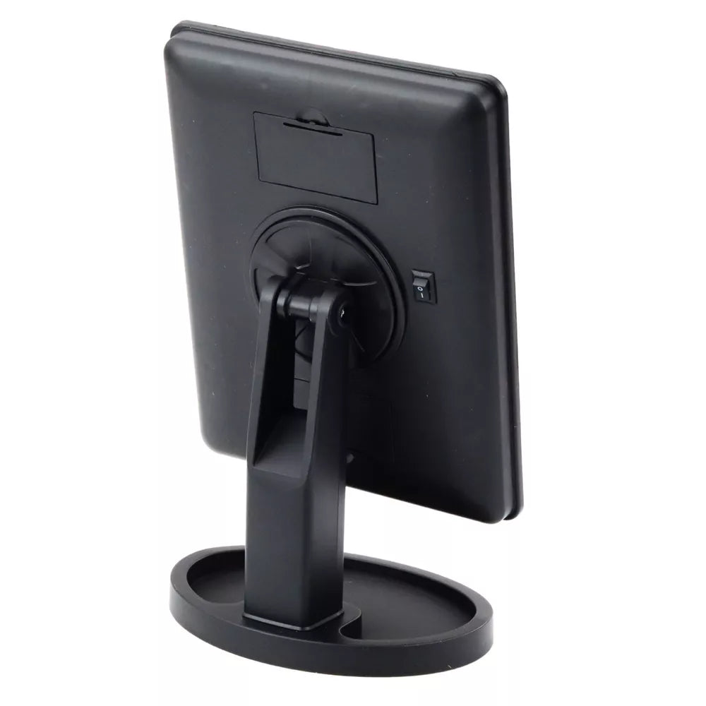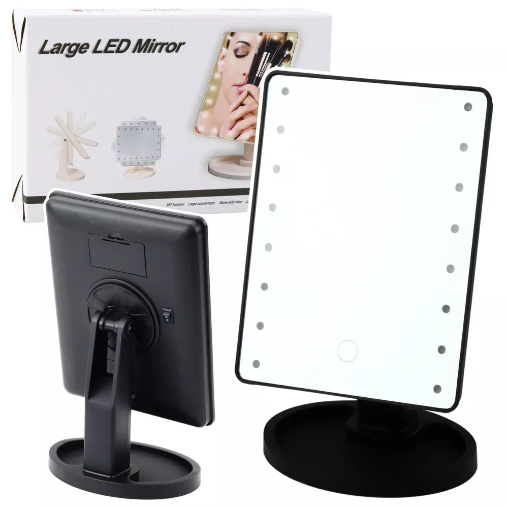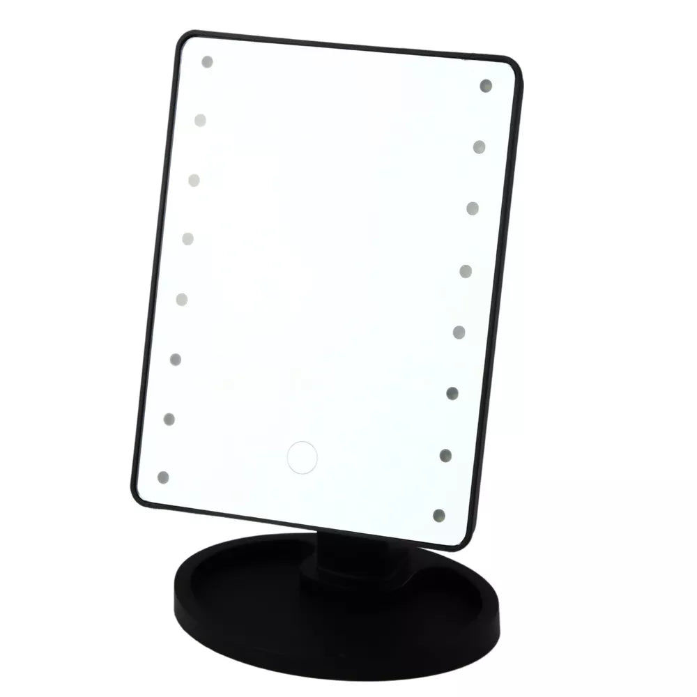 Kosmetinis veidrodis su 16 LED diodų, stovu ir reguliuojamu juodu paviršiumi