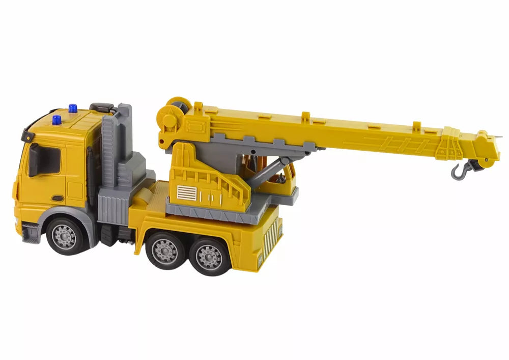 Nuotoliniu būdu valdoma statybinė transporto priemonė yra realistiškai atkartotas modelis. Kiekviena detalė, plius šviesos ir garso elementai perkels jūsų vaiką į linksmybių pasaulį. Jame yra žibintai ant stogo ir transporto priemonės priekyje. Nuotolinio valdymo pulto dažnis yra 2,4 Ghz, jo valdymas yra labai paprastas, dvi vairasvirtės leis patogiai manevruoti. Su jo pagalba operatorius gali jį vairuoti, keisdamas kryptis pirmyn/atgal ir dešinėn/kairėn. Du apatiniai mygtukai yra atsakingi už krano valdymą.