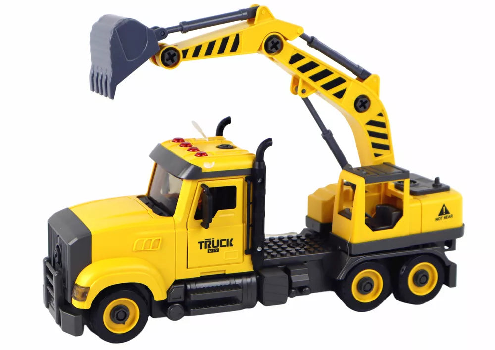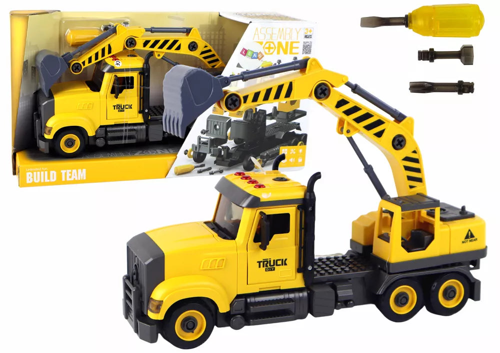 Frikcinė pavara užtikrina paprastą ir dinamišką sunkvežimio judėjimą. Be to, rinkinyje yra atsuktuvas su 2 keičiamais antgaliais, kurie leis interaktyviai žaisti ir eksperimentuoti.