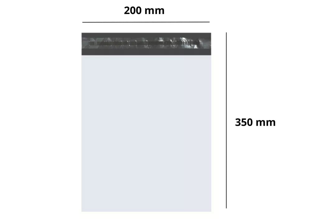 Polietileninio maišelio matmenys yra 200 mm x 350 mm, todėl jis puikiai tinka dokumentams, drabužiams, knygoms ir kitiems daiktams siųsti.