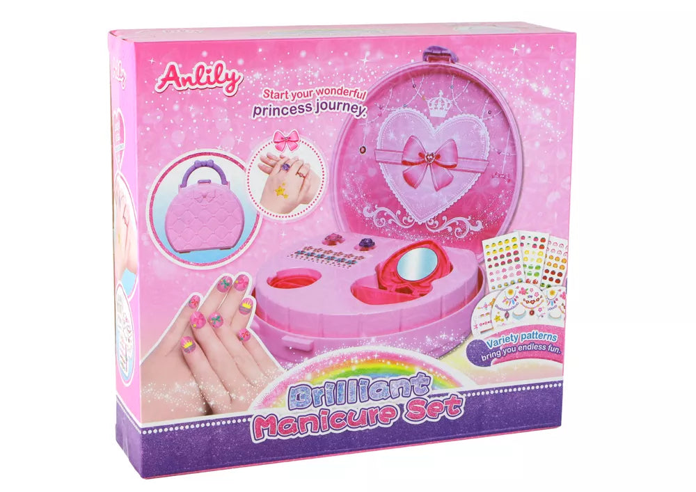 Kviečiame atrasti mūsų žavingą rožinį lagaminą su nagų priedais, kuris išpildo mažųjų menininkų ir grožio entuziastų svajones.