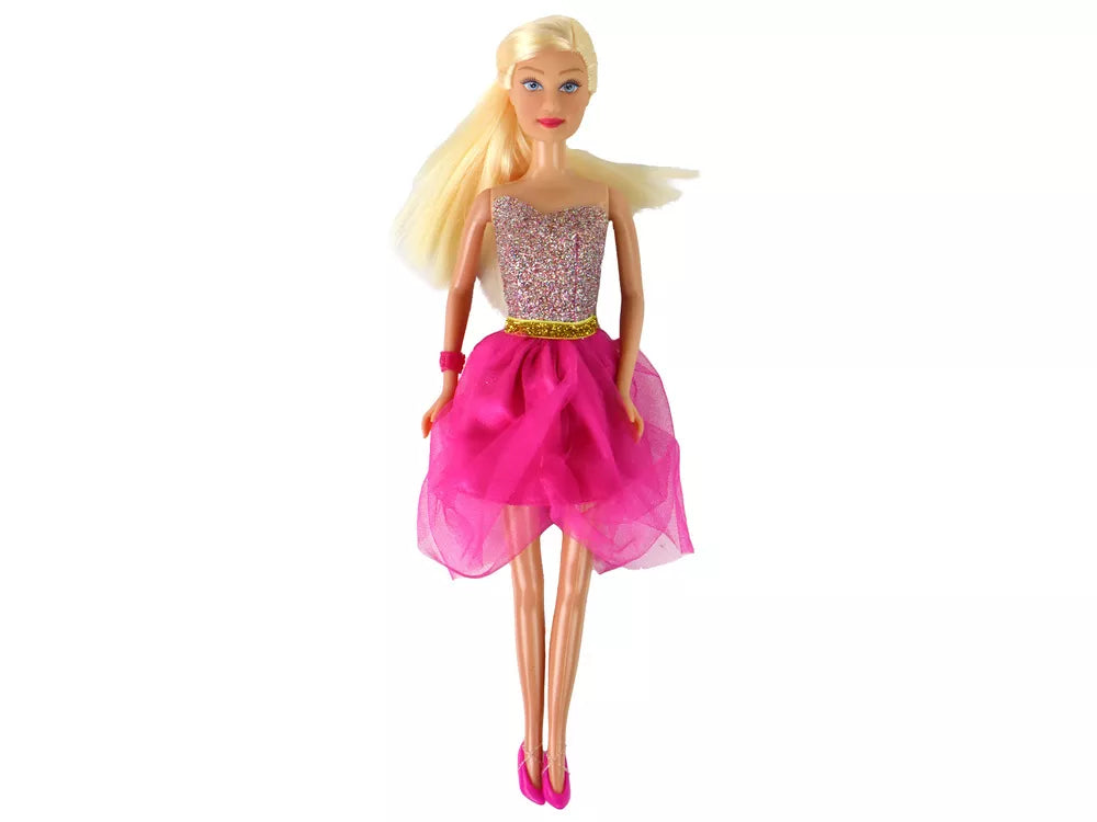 Lėlė Lucy, rožinė blizgučių suknelė, batų rinkinys