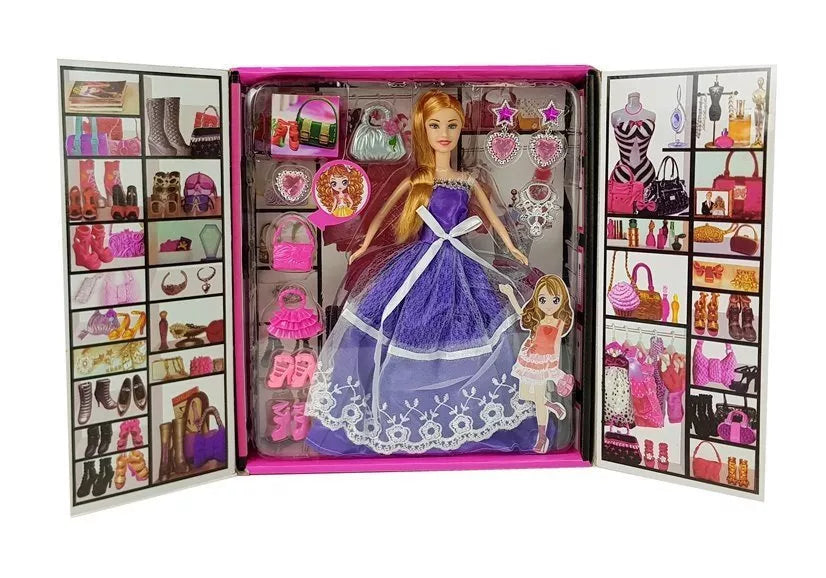 Žaislinė lėlė turi tankius ir ilgus šviesios spalvos plaukus ir mergaitišką veidą, papuoštą lengvu makiažu. Ji atrodo kaip princesė! Ji apsirengusi ilga violetinės ir baltos spalvos nėrinių puošnia suknele. Kupina elegancijos ir aksesuarų, ji gali eiti į prabangų balių ir padaryti įspūdį visiems aplinkiniams. Rinkinį sudaro įspūdingi aksesuarai, kuriuos galima pridėti pagal savo skonį. Dėžutė atidaroma, kaip spinta, viduje paveikslėliai imituoja spintą. Vaikas gali saugiai laikyti lėlę su priedais čia.