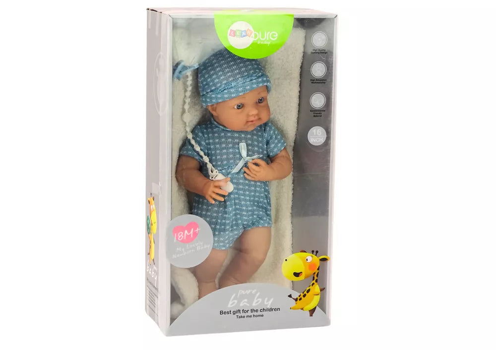 Pagaminta iš aukščiausios kokybės, saugių medžiagų, lėlė turi tikroviškus veido bruožus, todėl atrodo kaip tikras kūdikis, o tai suteikia autentiškumo ir gilumo vaikų patirčiai. Be to, čiulptuko ant virvelės ir minkšto pleduko buvimas suteikia realizmo ir skatina kurti įvairius žaidimo scenarijus.