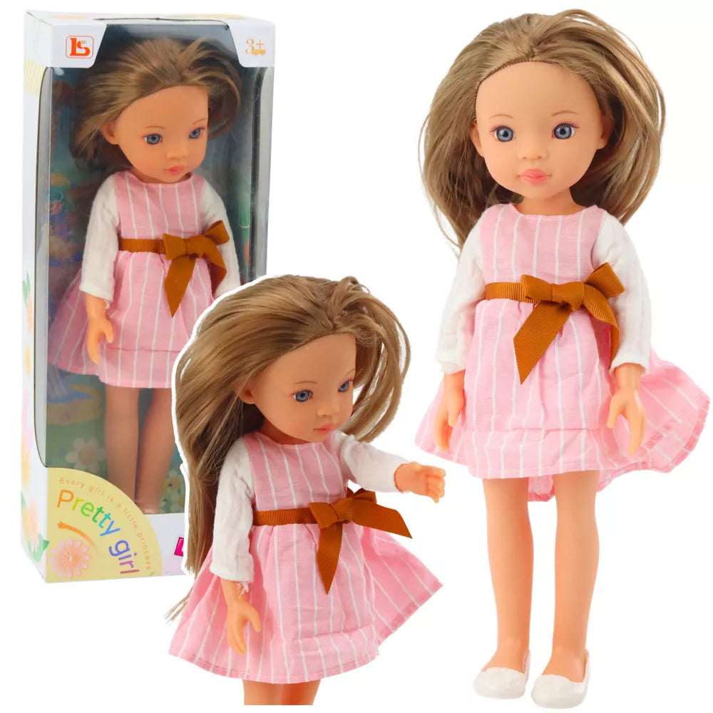 GRAŽI MERGAITĖ LĖLĖ SU ROŽINE DRYŽUOTA SUKNELE 32 CM