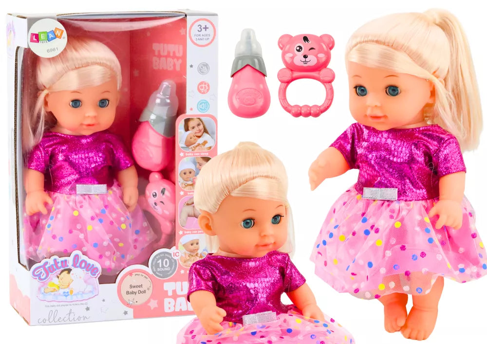 ⭐ Lėlė su rožine suknele, šlapinanti buteliuką, barškučio garsai ⭐