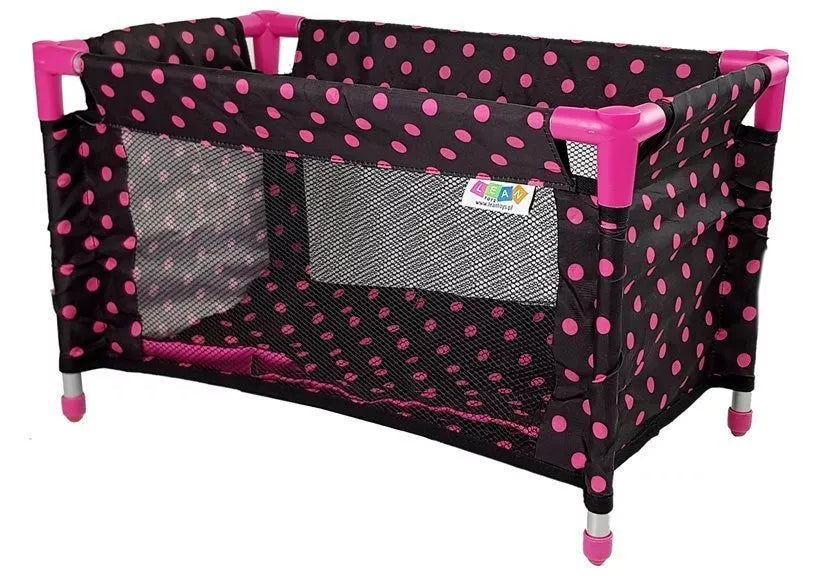 Dabar jūsų vaiko lėlė turi savo kampelį ir vietą, kur jos lėlė gali miegoti. Dėl tinklelio šonuose ji gali stebėti, kas vyksta su lėle, ir atidžiai ją stebėti. Rėmas pagamintas iš aliuminio vamzdelių su rožinėmis plastikinėmis jungtimis. Į komplektą įeina antklodė ir pagalvė. Visa lovelė ir elementai yra juodos spalvos su rožiniais taškeliais ir rožiniais elementais. Viduje tilps apie 40 cm dydžio lėlė.