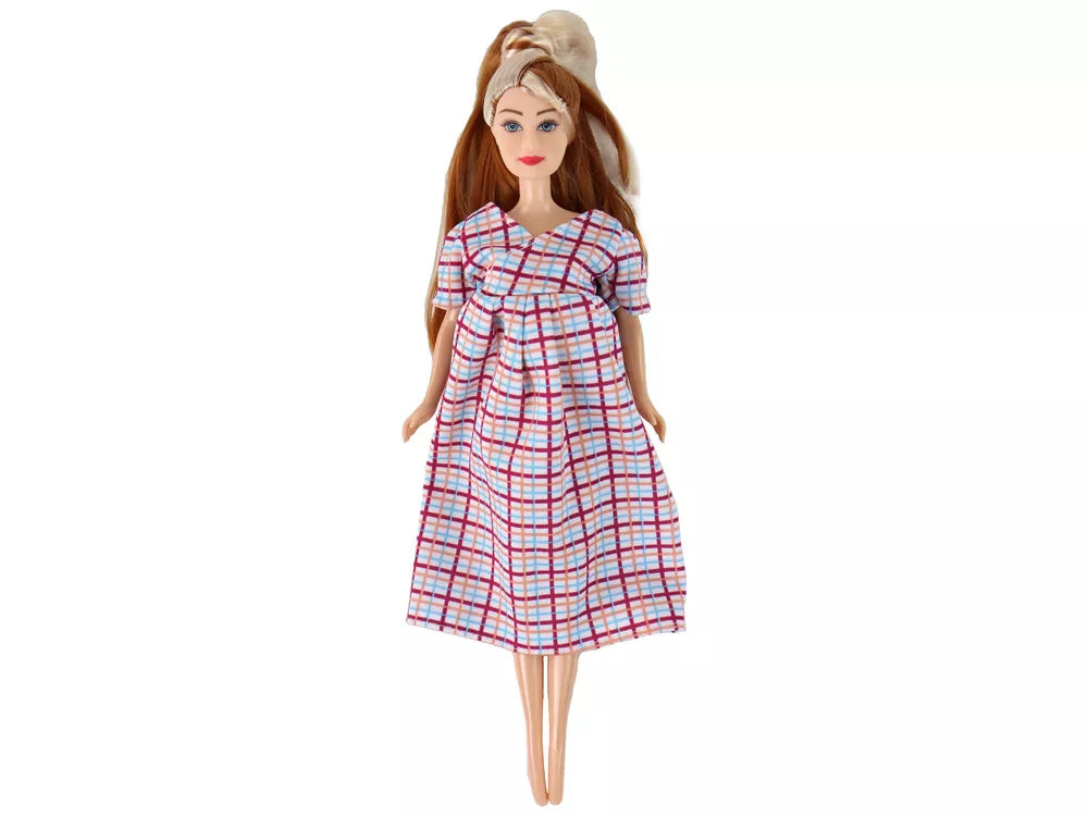 Lucy lėlių rinkinys, nėščia lėlytė, vežimėlis, ilgi rudi plaukai