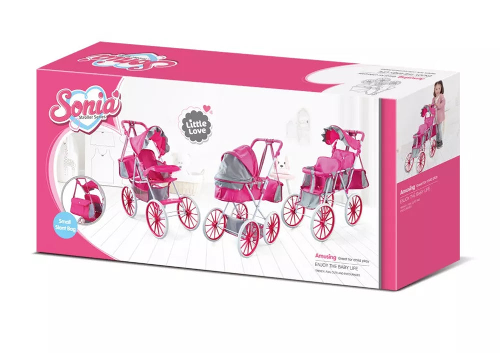 Rožinis lėlių vežimėlis yra nepaprastas žaislas, įtraukiantis vaikus į rūpestingumo ir kūrybinio žaidimo pasaulį. Jo tvirta metalinė konstrukcija garantuoja ilgaamžiškumą, leidžiantį ilgai naudoti net ir intensyviai naudojant. Dideli putplasčio ratai užtikrina sklandų važiavimą įvairiais paviršiais, o tai dar labiau paįvairina linksmybes.