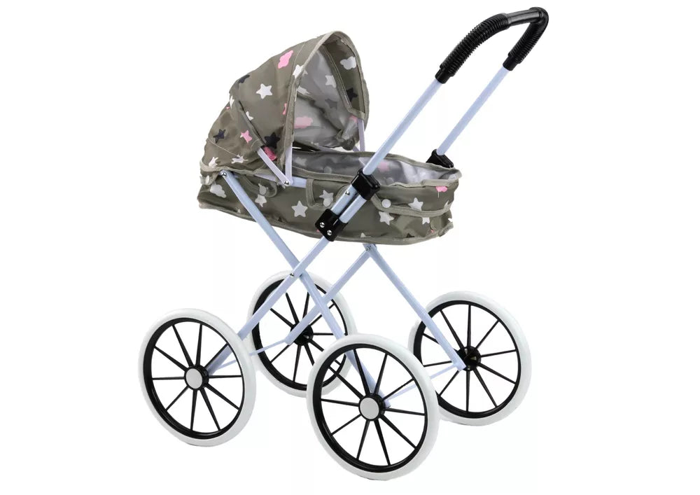 Lėlių vežimėlis dideliais ratais sulankstomas žvaigždės pilkas