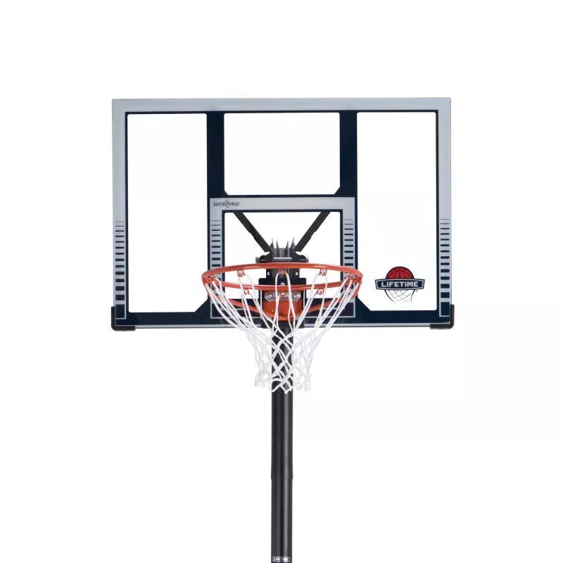 LIFETIME BOSTON Krepsinio Stovas Šis nešiojamas krepšinio stovas turi 44 colių (apie 112 cm) lentą, pagamintą naudojant „Steel-Framed Shatter-Proof“ technologiją.... Skaityti daugiau