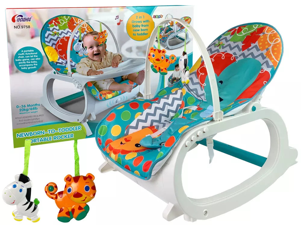 Ši sėdynė auga kartu su jūsų vaiku! Kai jūsų kūdikis paauga, tereikia nuimti diržus. Pakabukai tikrai patrauks vaiko dėmesį, skatindami jį treniruoti rankas. Sūpynės nuramins vaiko pojūčius, padės užmigti dėl vibracijos, o draugiška muzika nuramins ir paskatins mažylį žaisti.