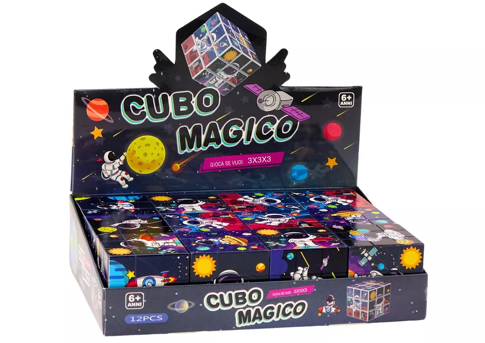 Magijos kubo dėlionė su kosmoso tema yra žaislas, derinantis pramogas su mokymusi. Vaikas susiduria su iššūkiu sudėlioti kubą taip, kad sujungus visas sieneles, susidarytų kosminis paveikslas, vaizduojantis astronautus, planetas ir kitus erdvės elementus. Šio edukacinio žaidimo dėka vaikai lavina ne tik loginio mąstymo įgūdžius, bet ir vaizduotę bei problemų sprendimo gebėjimus.