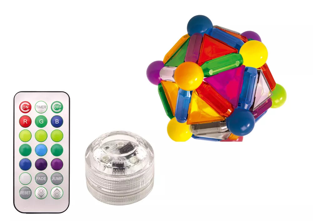 Be to, rinkinyje taip pat yra lempa, apšviečianti pastatus, kurią galima valdyti pridedamu nuotolinio valdymo pulteliu. Dėl to vaikai gali keisti apšvietimo spalvas, o tai dar labiau praturtina ir paįvairina jų žaidimą, skatina tolesnį tyrinėjimą ir kūrybą.