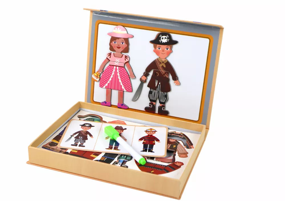 Magnetinių dėlionių rinkinys yra unikalus edukacinis žaislas, perkeliantis vaikus į žavingą pasakų personažų ir kūrybingų istorijų pasaulį. Tai puikus linksmybių ir mokymosi derinys, lavinantis pažintinius gebėjimus, loginį mąstymą ir vaiko vaizduotę. Dėl spalvingų magnetinių elementų ir interaktyvios lentos kiekvienas vaikas gali kurti savo istorijas ir atlikti įvairius vaidmenis.