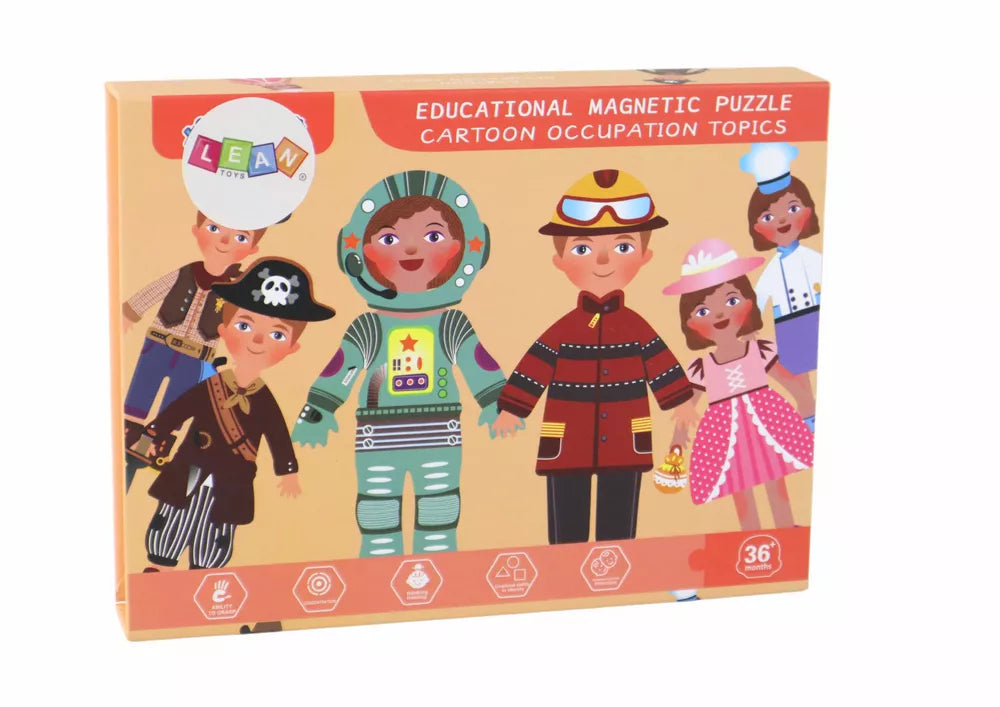 Rinkinį sudaro dėlionės su animacinių filmų personažų motyvais, tokiais kaip piratas, astronautas, kaubojus ir daugelis kitų. Kiekvieną personažą sudaro keli magnetiniai elementai, leidžiantys vaikams juos derinti ir eksperimentuoti. Galimybė keisti galvas, liemenis ir kojas suteikia neribotą linksmybę, o vaikas gali savarankiškai kurti visiškai naujus personažus ir kurti originalias istorijas.