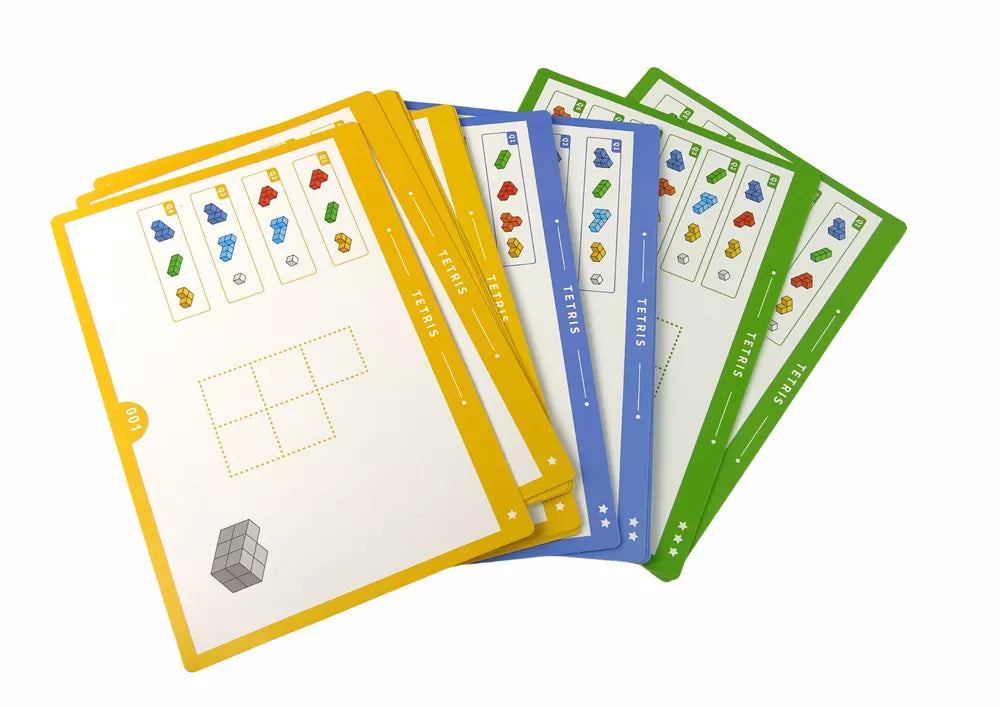 Rinkinyje taip pat yra dvidešimt užduočių kortelių su įvairiomis formomis, kurias galima sudėlioti į trimačius statinius. Tai puiki priemonė vaikų kūrybiškumui ir erdviniams įgūdžiams lavinti.