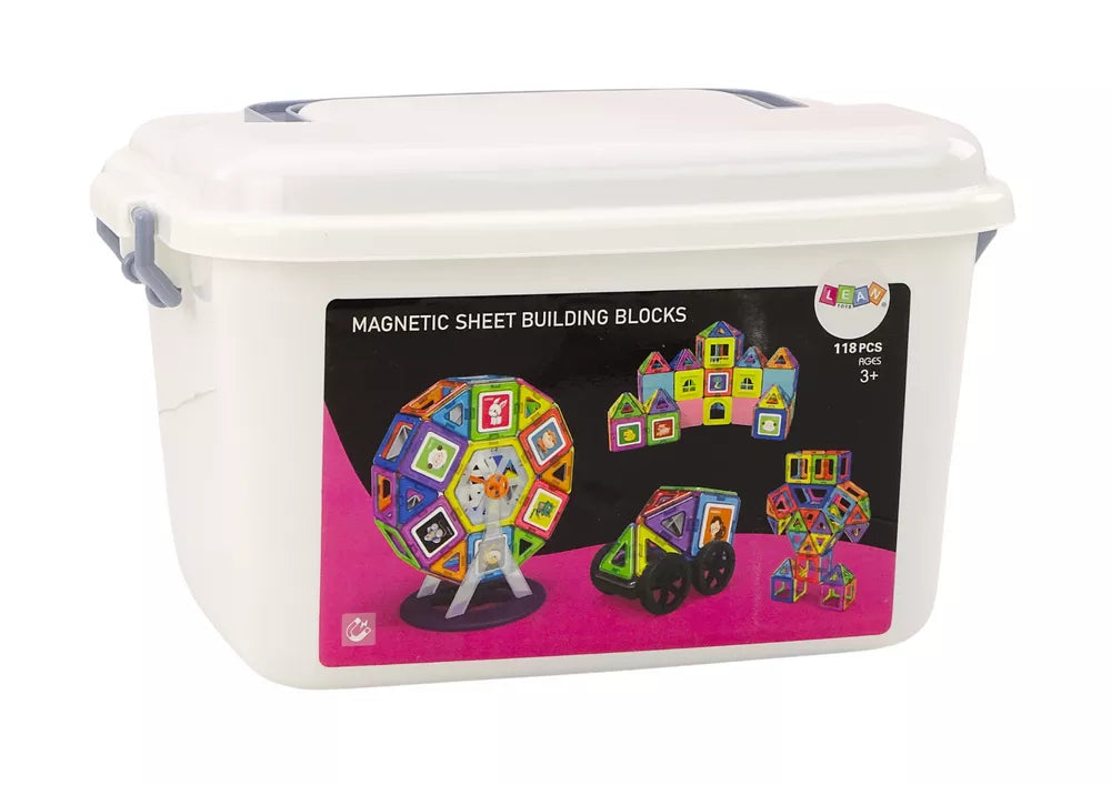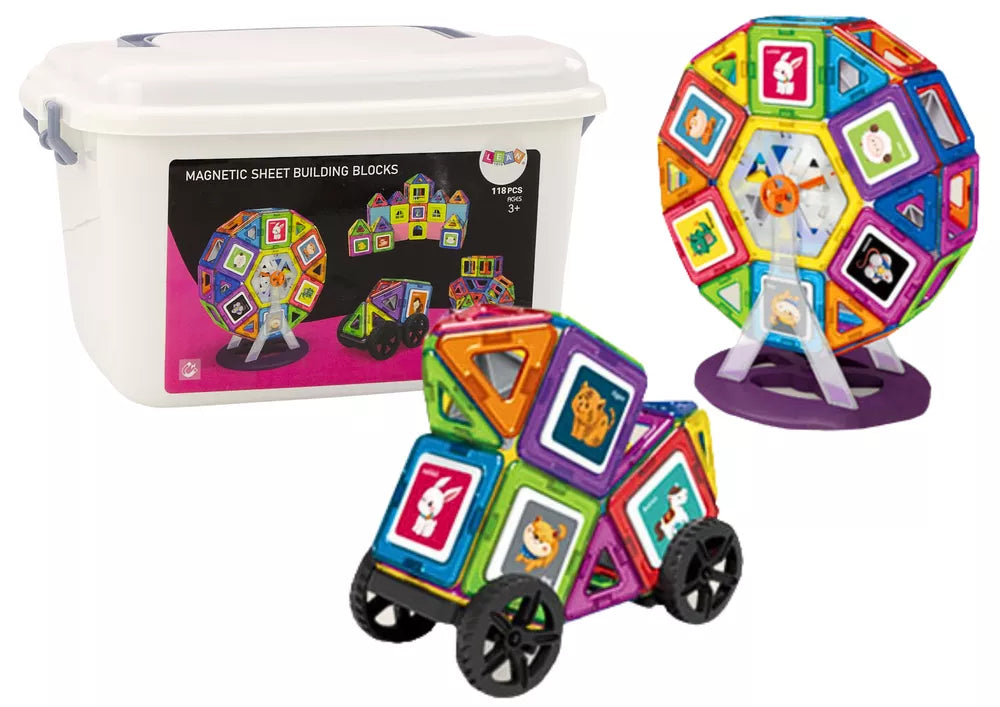 Magnetinių blokelių rinkinys – puikus pasirinkimas vaikams, kurie mėgsta kurti, eksperimentuoti ir lavinti savo konstravimo įgūdžius. Su 118 elementų rinkinys siūlo neribotas statybos galimybes, leidžiančias sukurti įvairias konstrukcijas, tokias kaip malūno ratas, pastatai, automobiliai ir kiti kūrybiniai projektai.