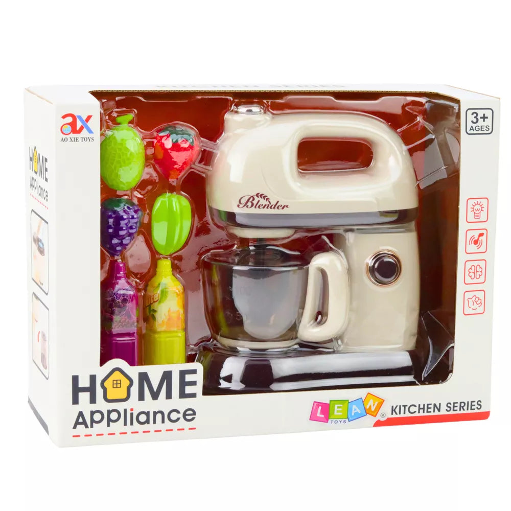 Paspaudus mygtuką ant korpuso, maišytuvas įjungia šviesos ir garso efektus, o viduje esantis maišytuvas pradeda suktis, imituodamas tikrą ingredientų maišymą. Viršutinė prietaiso dalis yra kilnojama, todėl vaikas gali pakelti galvutę ir išimti pritvirtintą dubenį, kuriame vyksta patiekalų „paruošimas“. Rinkinyje taip pat yra spalvingų vaisių ir butelių su gėrimais, kurie leidžia vaikui kurti išgalvotus receptus, mišinius ir desertus. Šis rinkinys skatina kūrybiškumą, lavina rankų įgūdžius ir skatina žaisti scenas iš kasdienio gyvenimo.