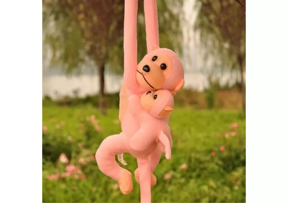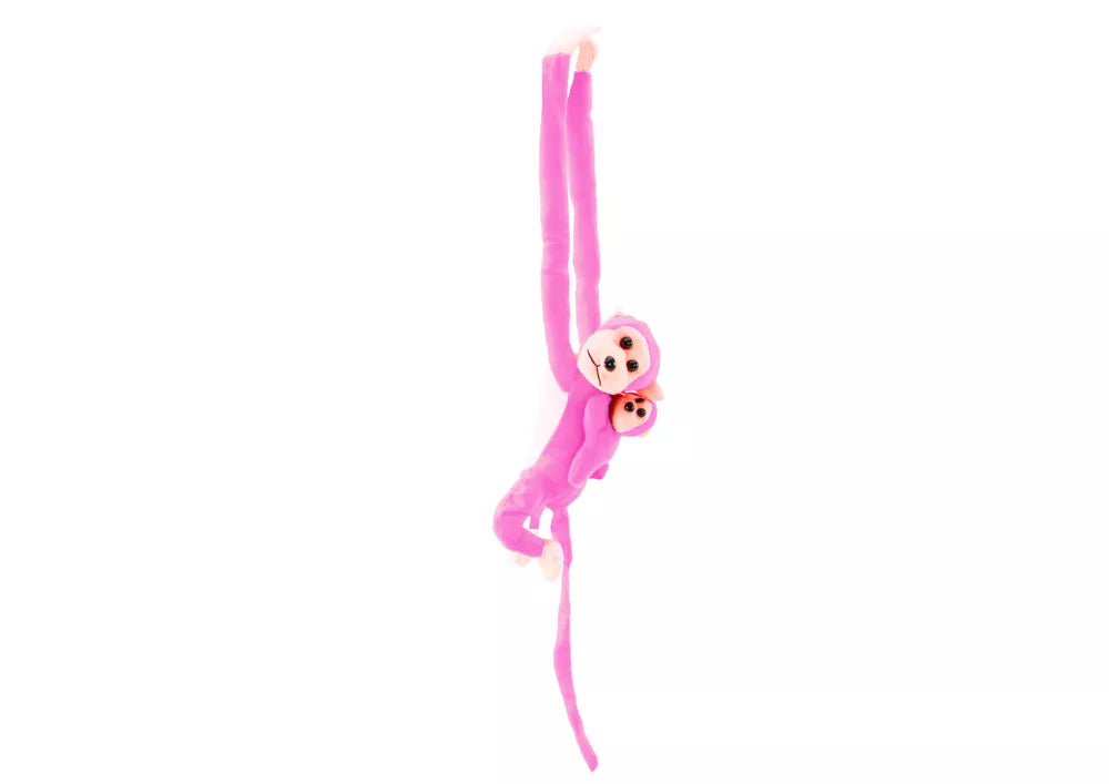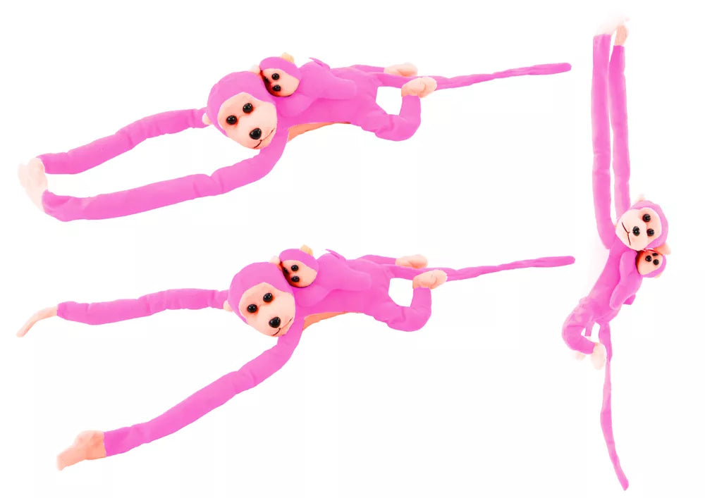 Maskotas pliušinis beždžionė su jaunikliu, rožinė, 90 cm