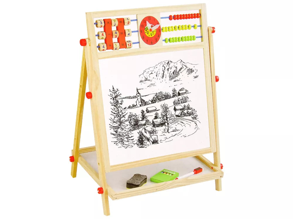 Medinė lenta yra unikalus ir universalus edukacinis žaislas. Jis yra apverčiamas, suteikiantis vaikams dvigubą dozę linksmybių ir mokymosi. Vienoje pusėje yra abakas ir visas alfabetas, leidžiantis išmokti skaičiuoti ir rašyti raides. Taip pat galite ant jo rašyti kreida, o tai lavina vaikų kūrybiškumą.