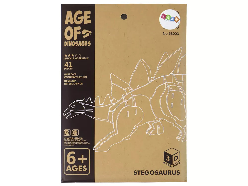 Medinis 3D erdvinis galvosūkis Stegozauras, edukacinis rinkinys, 41 detalė