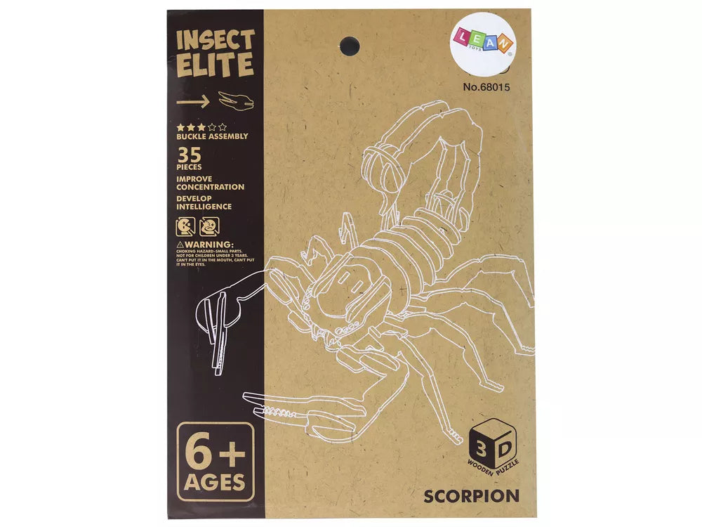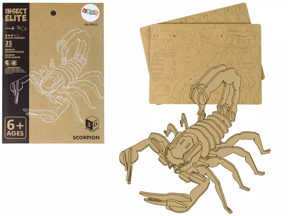 Skorpionas, pagamintas iš 3D medinių dėlionių! Tai įdomi ir edukacinė patirtis, kuri suartins jūsų vaiką su kūrybiniu darbu, lavins erdvinę vaizduotę ir rankų įgūdžius. Mūsų medinis modelis sukurtas sistemingai išstumiant elementus iš pjaustytų medinės faneros lakštų ir sujungiant juos pagal pridedamas paveikslėlių instrukcijas.
