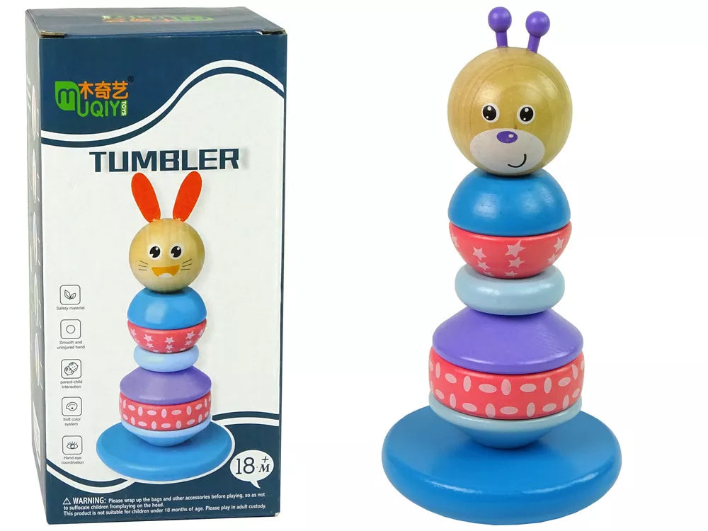 Spalvingą kaladėlių rinkinį sudaro 6 apvalūs įvairių dydžių ir raštų diskai. Pačiame viršuje yra mielos meškiuko galvytė su kaktomis. Pagrinde yra kaištis, ant kurio reikia uždėti detales. Jis yra pusapvalės formos, todėl balansuojasi nuo kiekvieno prisilietimo, todėl sunku uždėti kaladėlę ant kaiščio. Mažylis galės išdėstyti bokštą įvairiomis konfigūracijomis, lavindamas vaizduotę. Sugriebę kaladėles, jie palaikys rankų ir akių koordinacijos bei tikslumo ugdymą. Spalvos ir raštai stimuliuos jūsų vaiko regėjimo pojūtį.