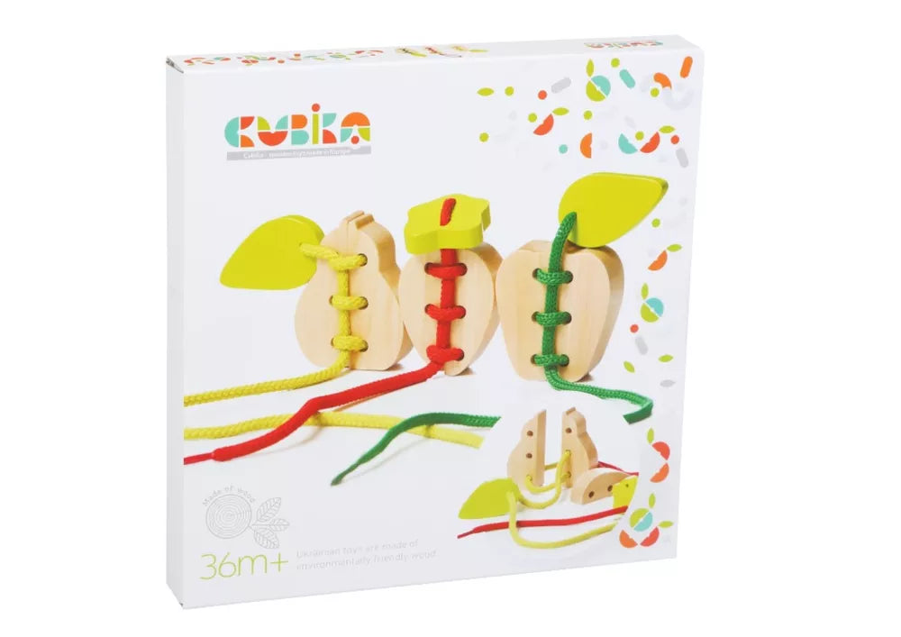 Aukštos kokybės rinkinys, pagamintas iš ekologiškos, natūralios medienos. Puikiai tiks kaip dovana tiek berniukui, tiek mergaitei. „Apple Braid“ iš „Cubiki“ yra kruopščiai pagamintas lavinamasis žaislas vaikams. Vėrimas yra labai gera treniruotė mažoms rankutėms, lavinanti rankų ir akių koordinaciją bei smulkiosios motorikos įgūdžius.