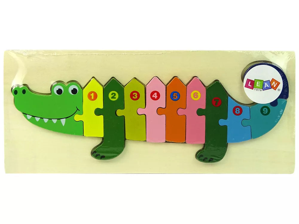 Krokodilas padalintas į dalis, ant kiekvienos iš jų yra skaičius nuo 1 iki 10. Surinkdamas žaislą, mažylis ne tik mokosi tikslumo, bet ir skaičiavimo iki 10 pagrindų.