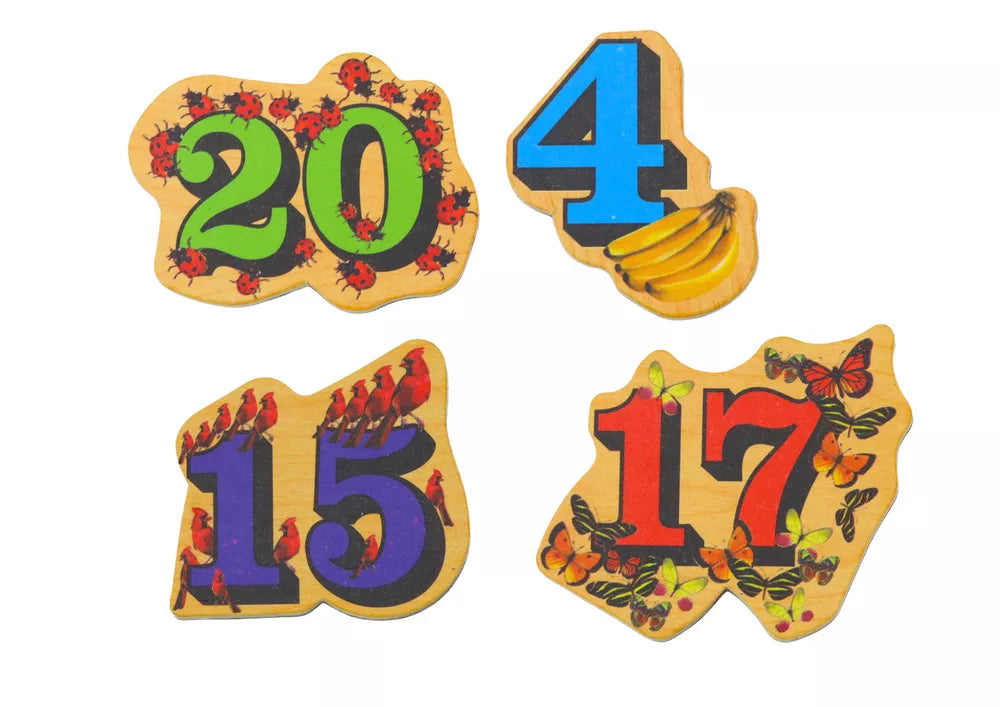 Medinių skaičių paveikslėlių magnetų rinkinys, 20 vienetų