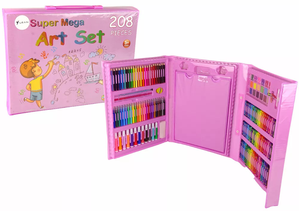 Meninis rinkinys rožiniame lagamine, 208 elementai