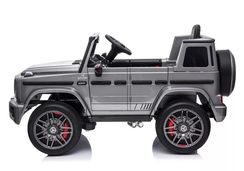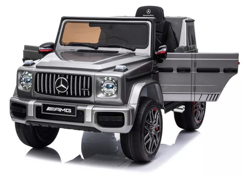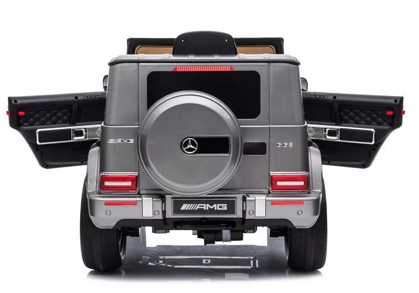 Mūsų Mercedes G63 AMG elektrinis pasivažinėjimo automobilis varomas 12V4,5Ah baterija ir 2x45W varikliu. Jis sukurtas pagal „Mercedes G63 AMG“, todėl automobilis atrodo labai tradiciškai. Sidabrinė apdaila suteikia šiam modeliui elegantiškesnį dizainą. Šis modelis turi automatinę pavarų dėžę su trimis greičio režimais. Jūsų vaikas jame jausis saugiai, nes atleidus akceleratoriaus pedalą, elektrinis stabdys automobilį sustabdys.