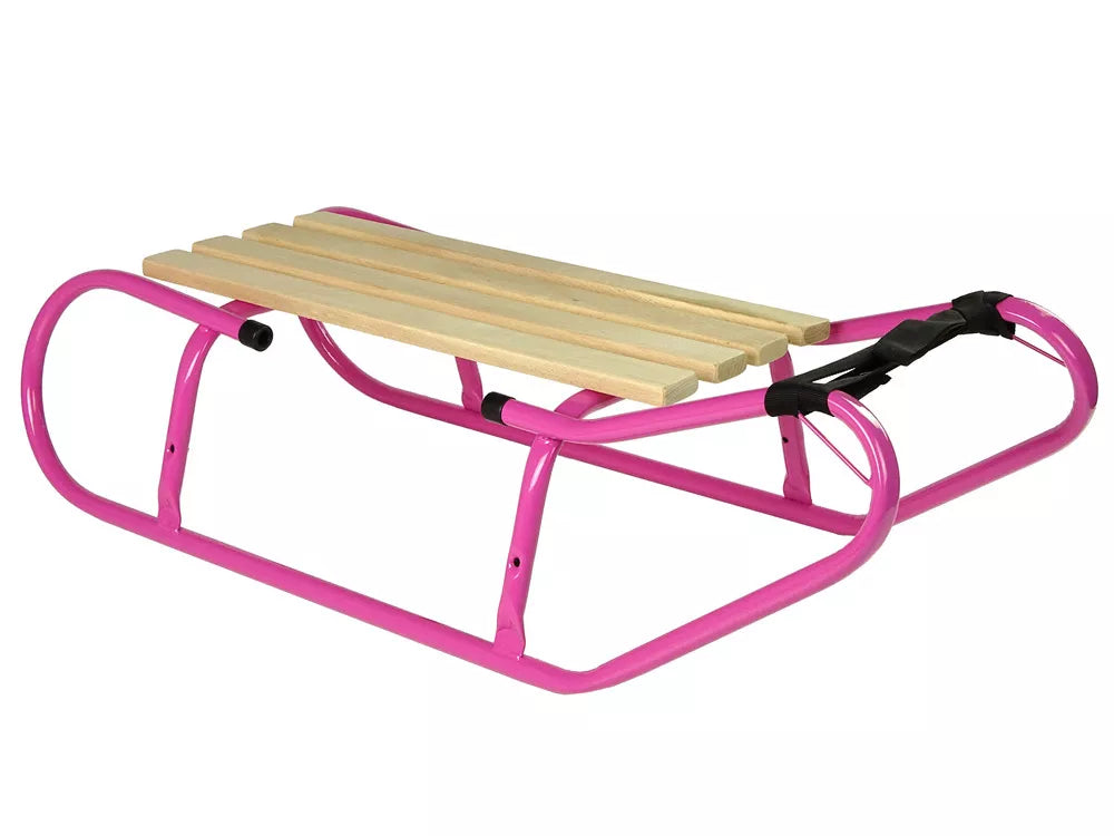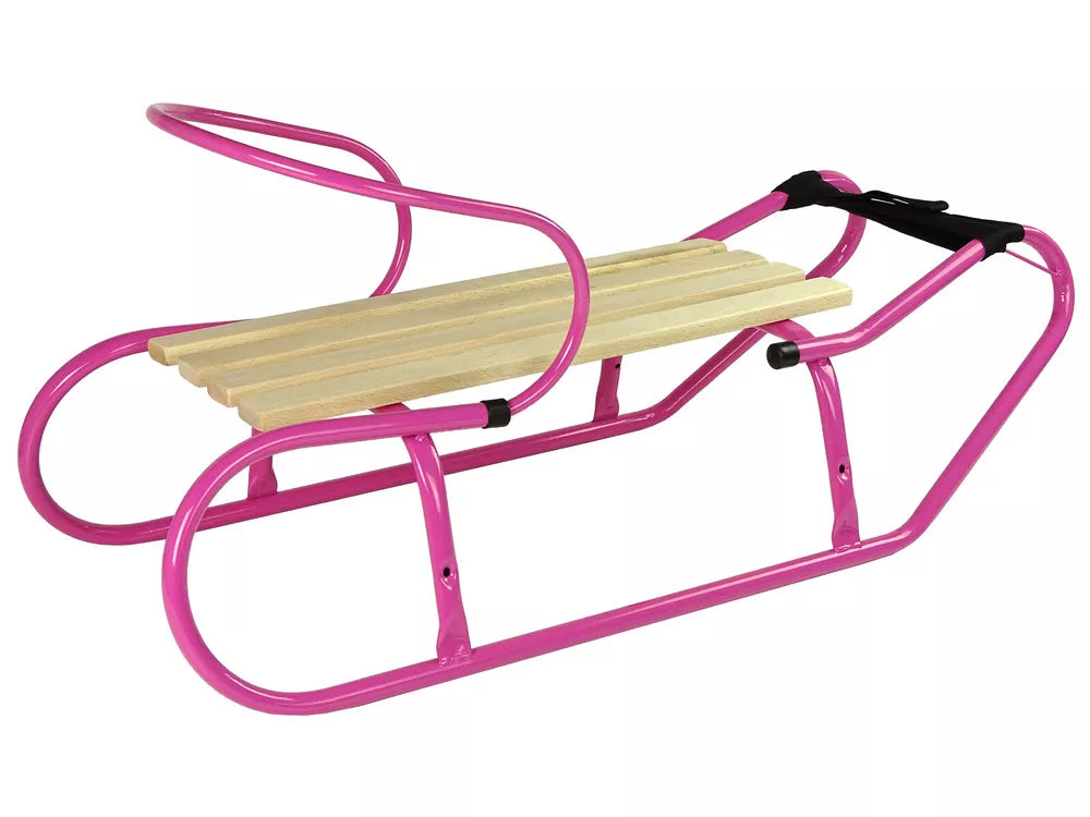 Metalinės rogutės su atlošu ir dirželiu, rožinės spalvos