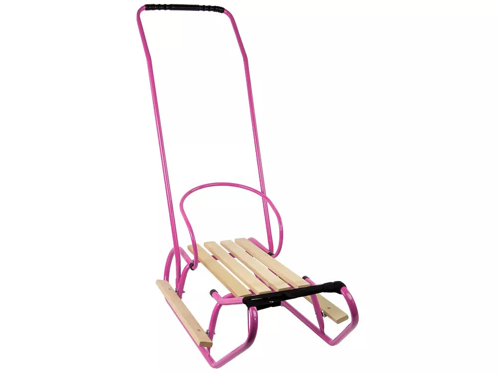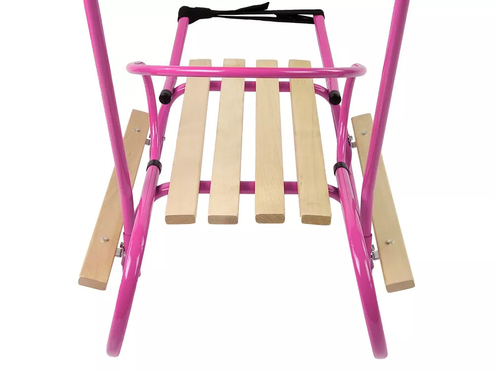 Metalinės rogutės su stūmimo rankena, atlošu ir dirželiu, rožinės