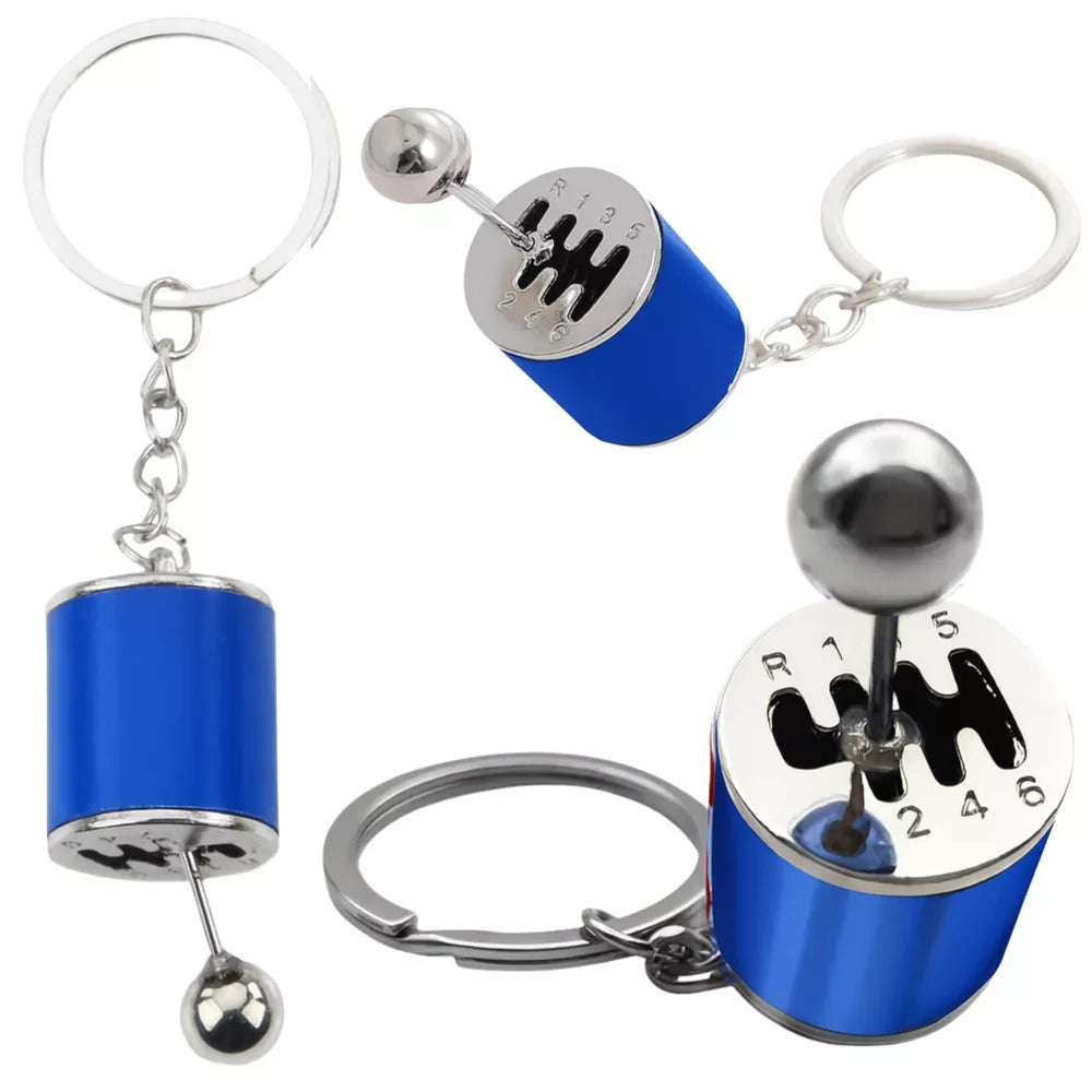 Metalinis raktų pakabukas su judančia pavarų dėže, mėlynas