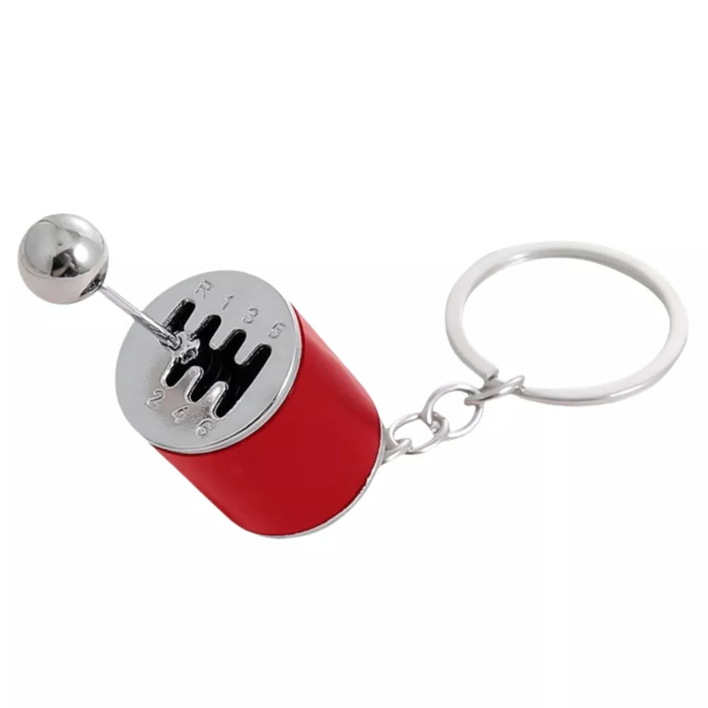 Metalinis raktų pakabukas su judančia pavarų dėže, raudonas