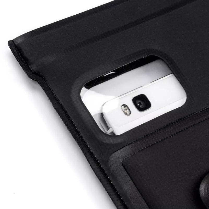 Dėklas turi didelį skaidraus PVC langą, leidžiantį nuolat matyti ekraną ir naudotis telefonu neišimant jo iš dėklo.