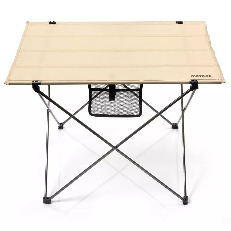 - Meteor Viator stovyklavimo staliukas – tai kompaktiškas ir itin praktiškas sprendimas aktyvaus poilsio gamtoje mėgėjams. Pagamintas iš lengvo, bet tvirto aliuminio, jis užtikrina stabilumą ir ilgaamžiškumą. Stalviršis padengtas 600D poliesterio „Oxford“ audiniu, todėl jis yra atsparus vandeniui ir lengvai valomas – jei susitepa, tiesiog nuvalykite drėgna šluoste.