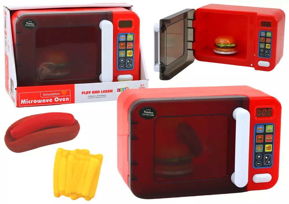 Mūsų mikrobangų krosnelė nėra tik žaislas – tai interaktyvi patirtis, kuri atgaivina linksmybes namuose. Paspaudus mygtuką, viryklė pradeda magišką gaminimo modeliavimą. Apšviestas interjeras leidžia atrodyti kaip tikrai mikrobangų krosnelei, o judama plokštelė suteikia tikroviškumo. Vaikas netgi gali atidaryti dureles, kad įdėtų savo maistą pašildymui, o pasibaigus laikui, išimti paruoštą patiekalą. Rinkinyje taip pat yra žaislinio maisto – mėsainis, gruzdintos bulvytės ir dešrainis, kurie suteikia dar daugiau tikrovės pramogoms.