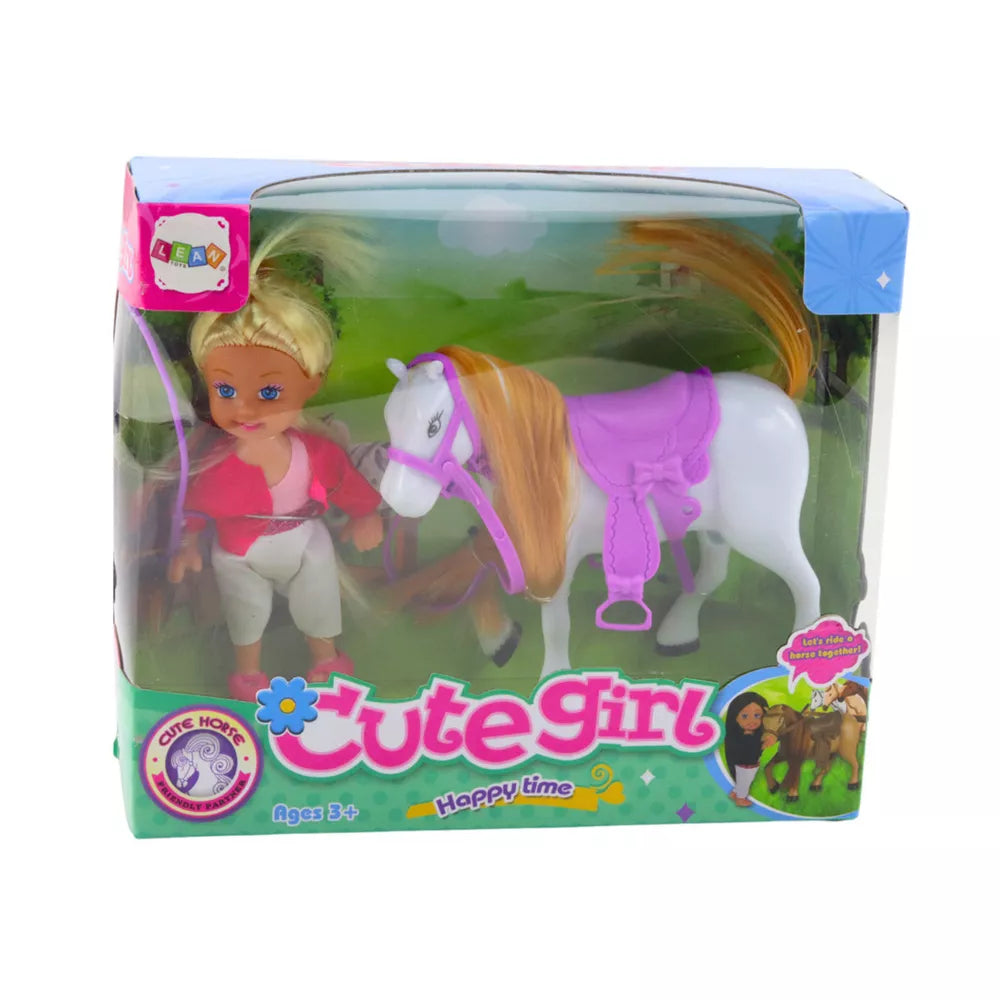 Žavingas lėlių rinkinys su arkliu yra puiki idėja vaikams, mėgstantiems jodinėti ir rūpintis gyvūnais. 12 cm ūgio mini lėlė, apsirengusi stilinga jojimo apranga, pasiruošusi įdomiam nuotykiui balne. Ją lydi gražus baltas arklys su ilgais karčiais ir uodega, papuoštas violetiniu balnu ir žąslais, kurie suteikia jam elegantišką išvaizdą ir padaro žaidimą dar realistiškesnį.