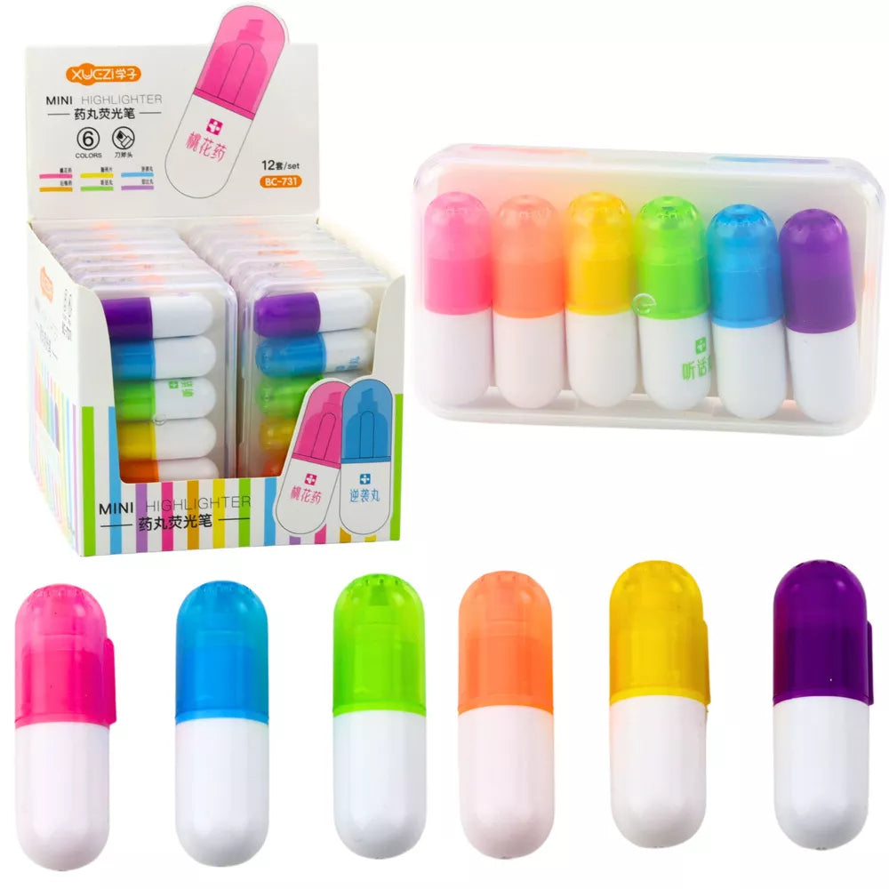 Žymekliai yra kompaktiško dydžio – 5,5 x 2 cm, o tai reiškia, kad jie tilps į bet kurią penalą, kosmetinę ar organizatorių. Jų kapsulės forma ne tik traukia dėmesį, bet ir palengvina laikymą rankoje. Visa tai patalpinta į praktišką plastikinę dėžutę, kuri leidžia lengvai laikyti ir nešiotis visą rinkinį nerizikuojant jo pamesti.