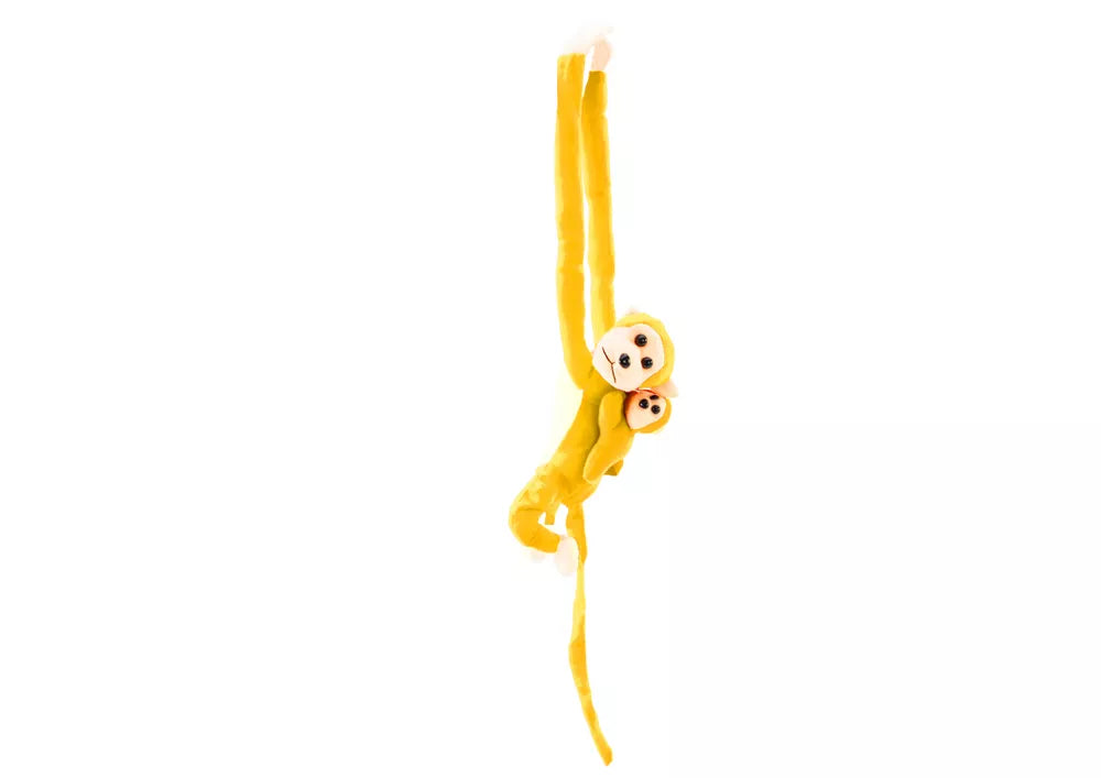Minkštas talismanas beždžionė su mažyliu, geltonas, 70 cm
