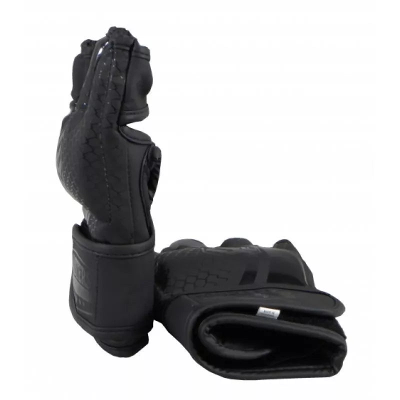 MMA pirštinės GFT-MATT-BLACK yra dalis MATT-BLACK serijos. Jos pagamintos iš sintetinės odos su matinės juodos spalvos apdaila. Delnas atviras, leidžiantis suimti.