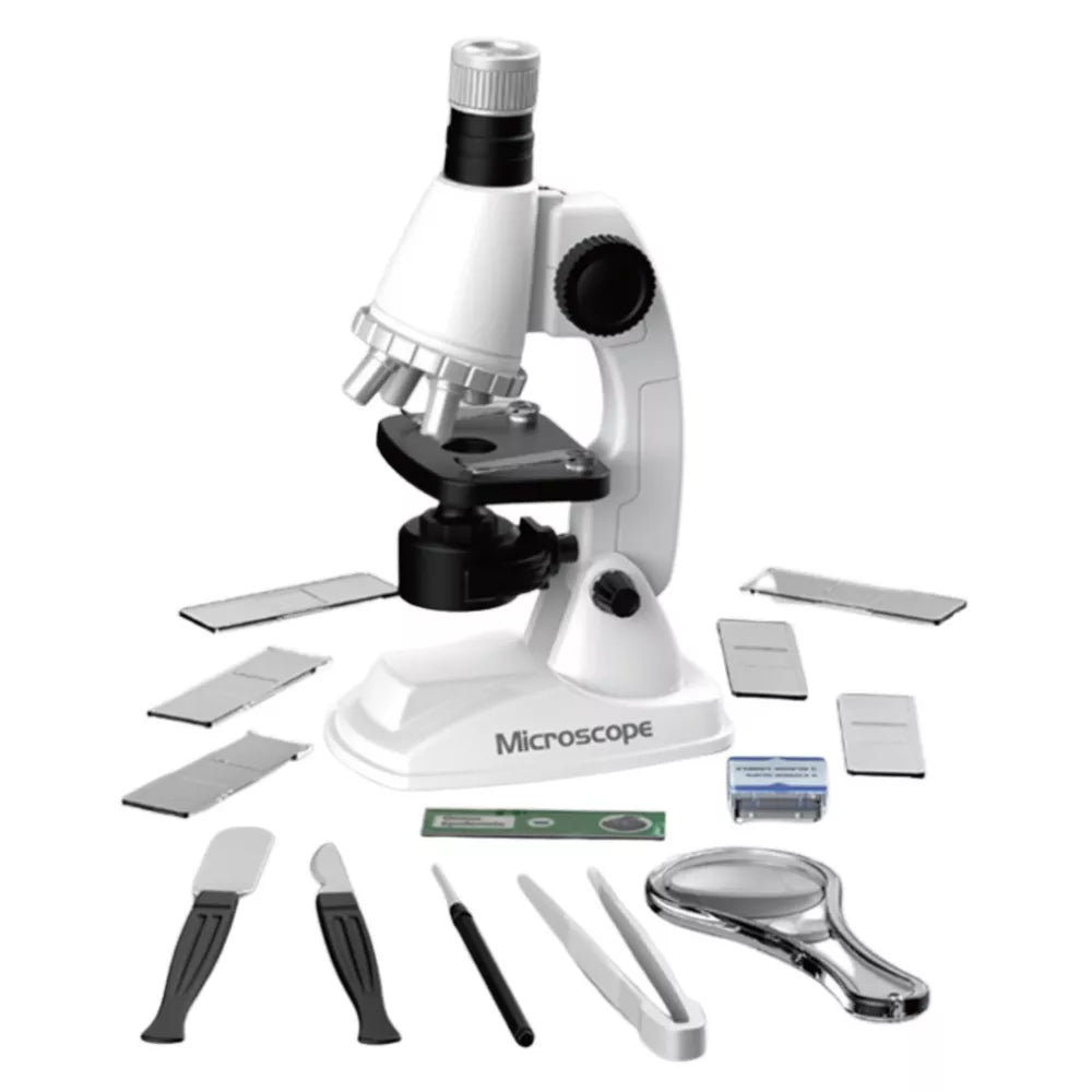 Mikroskopas yra kompaktiš matmenų, todėl jis lengvai telpa kuprinėje, stalčiuje ar ant stalo. Jis maitinamas 5 AA baterijomis (nepridedamos), todėl galite jį naudoti nepriklausomai nuo prieigos prie elektros - jis idealiai tinka tiek namuose, tiek kelionių metu. Rinkinįje yra daug priedų, tokių kaip: stikleliai, pipetė, pincetas, didinamasis stiklas ir laboratoriniai indai, kurie leidžia patiems paruošti ir ištirti mėginius - kaip tikroje laboratorijoje.