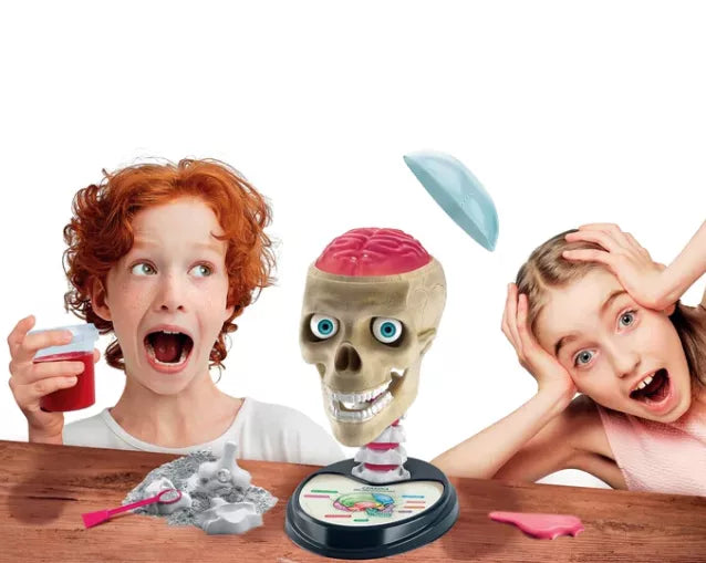 Nuo gipso liejimo iki galutinio surinkimo – šis žaislas sujungia žmogaus kūno dalių konstravimo džiaugsmą su mūsų kaukolės sandaros tyrinėjimo lytėjimo patirtimi.