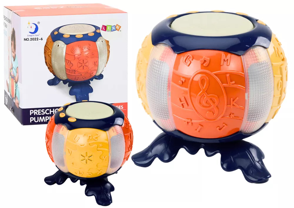 Mokomasis moliūgas – tai interaktyvus žaislas, sukurtas vaikams, kurie mėgsta muziką ir dinamišką pramogą. Jo ryškios oranžinės ir tamsiai mėlynos spalvos iškart patraukia akį ir skatina sąveiką. Moliūgo dizainas yra ne tik estetiškas, bet ir funkcionalus – jo pagrindą sudaro lapų formos stovai, kurie užtikrina stabilumą žaidimo metu ir suteikia žavesio visai konstrukcijai.