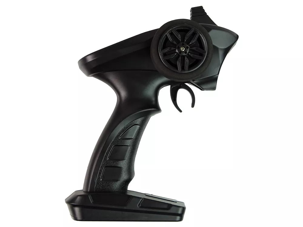 Į komplektą taip pat įeina specialus nuotolinio valdymo pultas, kurio dėka galime sklandžiai valdyti žaislą pirmyn, atgal ir į šonus, užtikrindami visišką kiekvieno judesio kontrolę. Taip pat galite įjungti žavų autopiloto variantą, kuris leis jums atsikvėpti. Paskutinis mygtukas skirtas greičiui nustatyti. Trumpas vidurinio mygtuko paspaudimas prikels žaislą, dėka apšvietimo, kuris suteikia vizualinio efekto jo fenomenaliai išvaizdai. Jo matmenys: 8 cm x 19,5 cm x 6 cm, todėl jis puikiai telpa rankoje, suteikdamas jums visišką kontrolę jį naudojant.